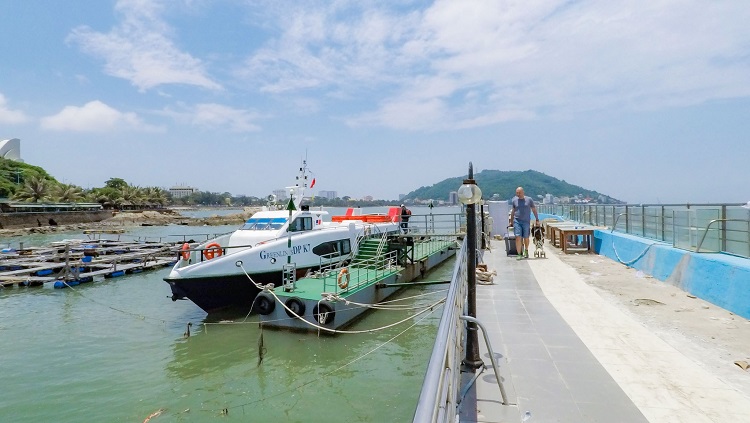 Tàu cao tốc từ Sài Gòn: Tàu cánh ngầm Greenlines HCM - Vũng Tàu (Bến Hồ Mây). Thời gian di chuyển khoảng 90 phút. khi xuống tàu đi bộ sẽ tới ga cáp treo Hồ Mây.